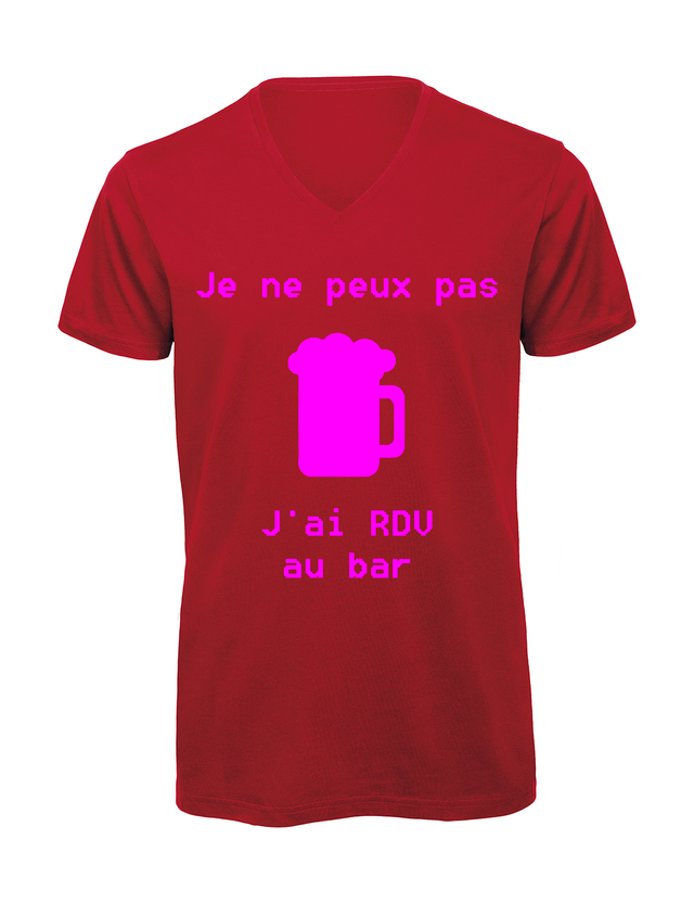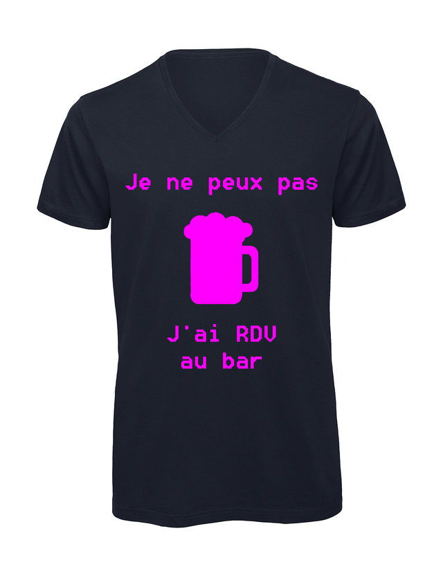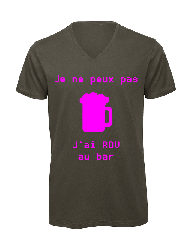 T-shirt homme col v "Je peux pas j'ai encore rdv au bar"