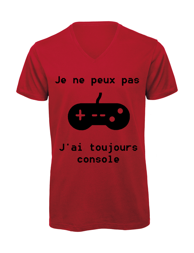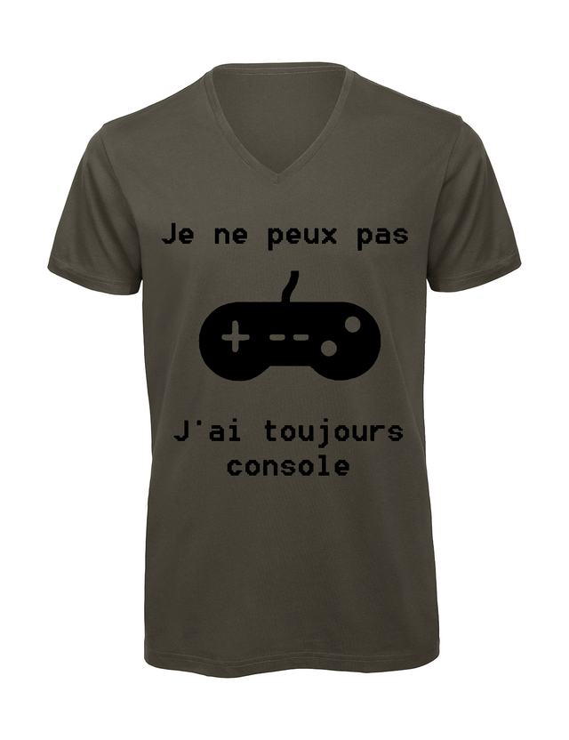T-shirt homme col v "Je peux pas j'ai toujours console"